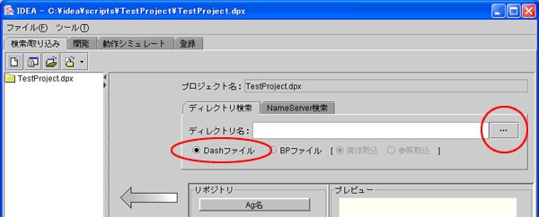 1.ディレクトリ検索タブ内の、Dashファイルをチェックし、ディレクトリ選択ボタンをクリックして、ディレクトリを選択して下さい。